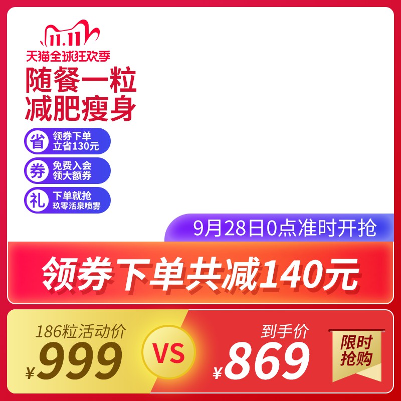 领淘教育 高端通用主图 天猫双11减肥瘦身主图PSD模板 随餐一粒到手价869元领券立减海报免费下载 https://www.lingtaoedu.com/1872.html