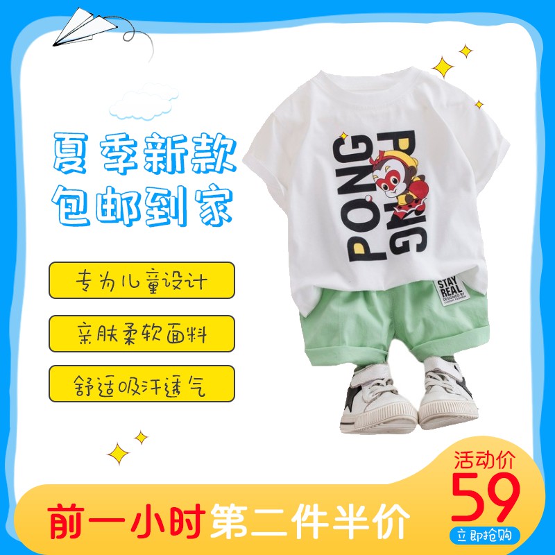 领淘教育 高端通用主图 PONG PONG童装夏季新款主图PSD模板,亲肤柔软面料前1小时第2件半价,活动价59元包邮 https://www.lingtaoedu.com/1960.html