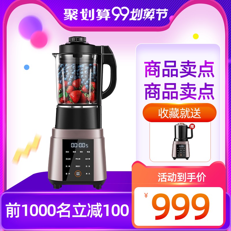 领淘教育 高端通用主图 聚划算99划算节破壁机主图PSD模板,收藏送赠品前1000名减100,活动价999元分层素材 https://www.lingtaoedu.com/2023.html