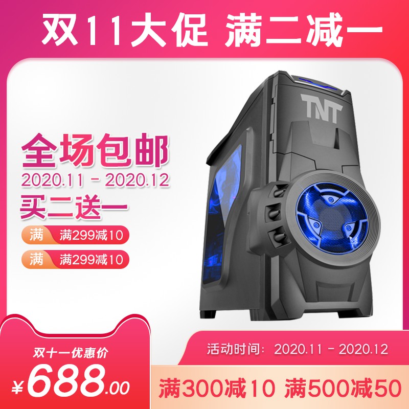 领淘教育 高端通用主图 双11黑色电竞主机主图PSD模板,蓝光透明侧板满二减一,688元满300减10分层素材 https://www.lingtaoedu.com/2101.html