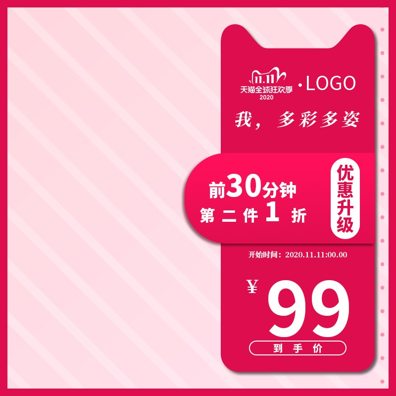 领淘教育 高端通用主图 天猫双11前30分钟第二件1折主图PSD模板,99元到手价促销设计免费下载 https://www.lingtaoedu.com/2169.html