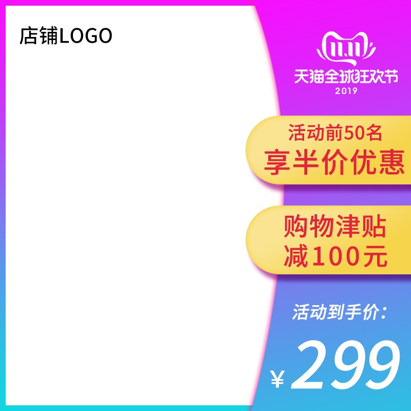 领淘教育 高端通用主图 天猫全球狂欢节2019主图PSD模板,前50名半价购物津贴减100元299元到手价设计 https://www.lingtaoedu.com/2372.html