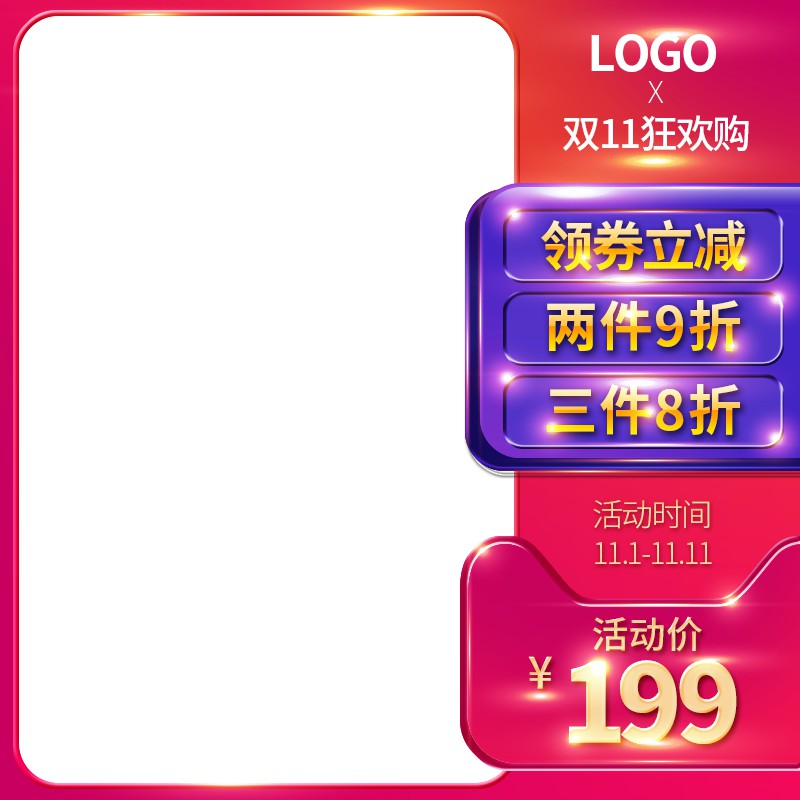 领淘教育 高端通用主图 双11狂欢购主图PSD模板免费下载,领券立减199元三件8折活动时间设计素材 https://www.lingtaoedu.com/2516.html