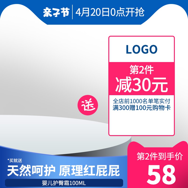 领淘教育 高端通用主图 亲子节婴儿护臀霜促销主图PSD模板免费下载,第2件减30元满300赠购物卡设计 https://www.lingtaoedu.com/2680.html